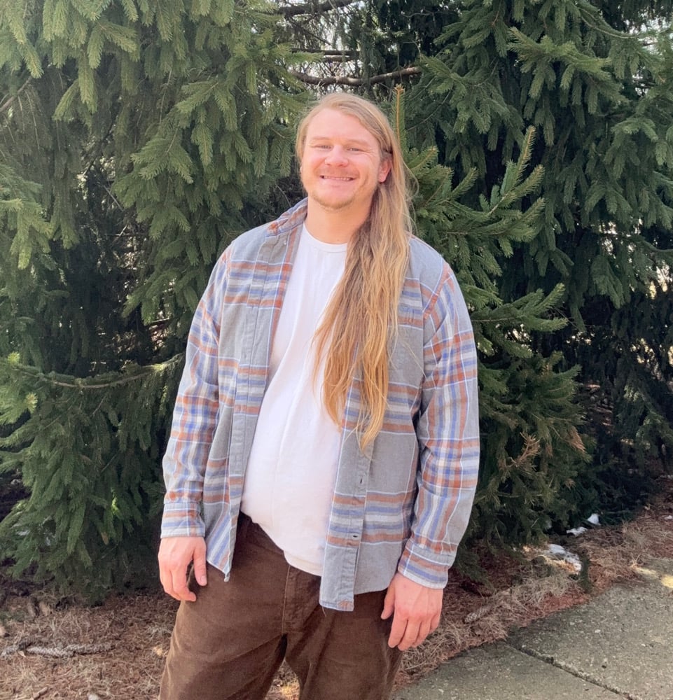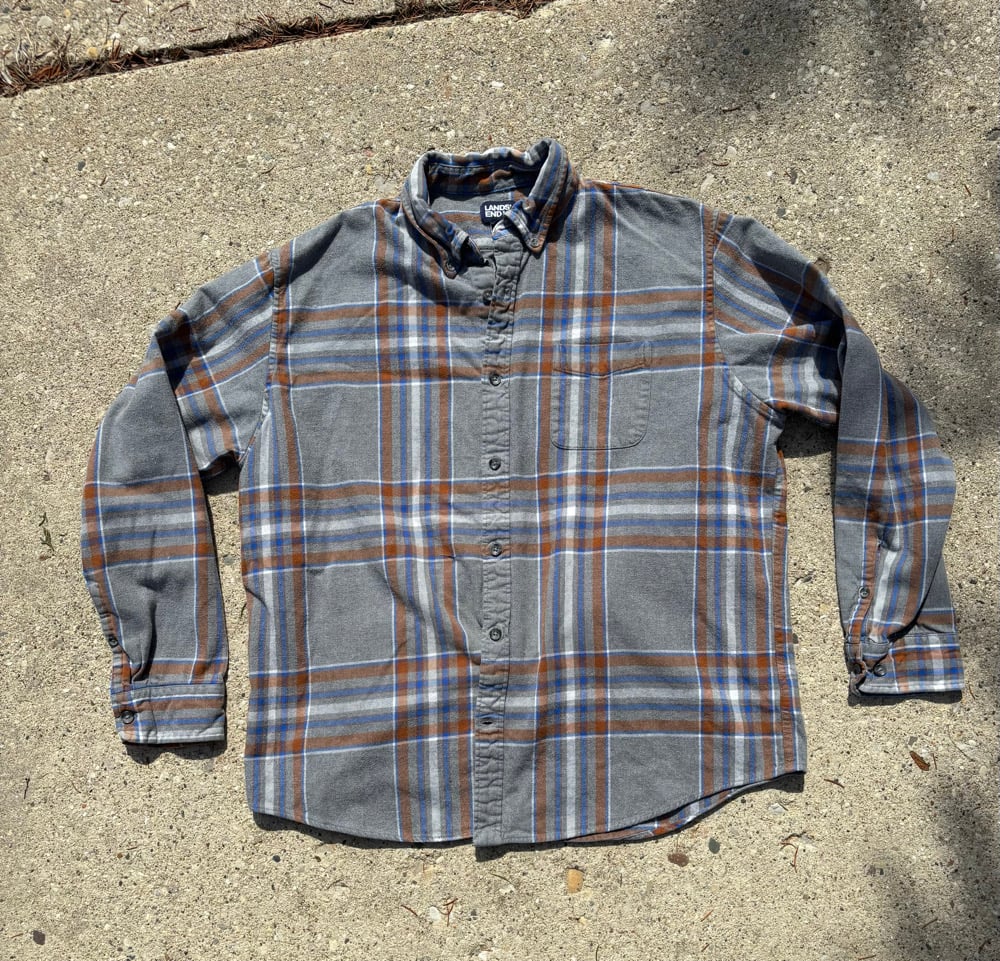 Large Lands End upcycled flannel with Brewers tshirt patch